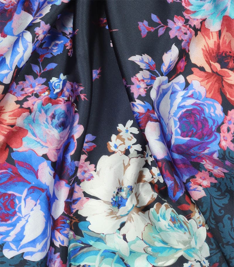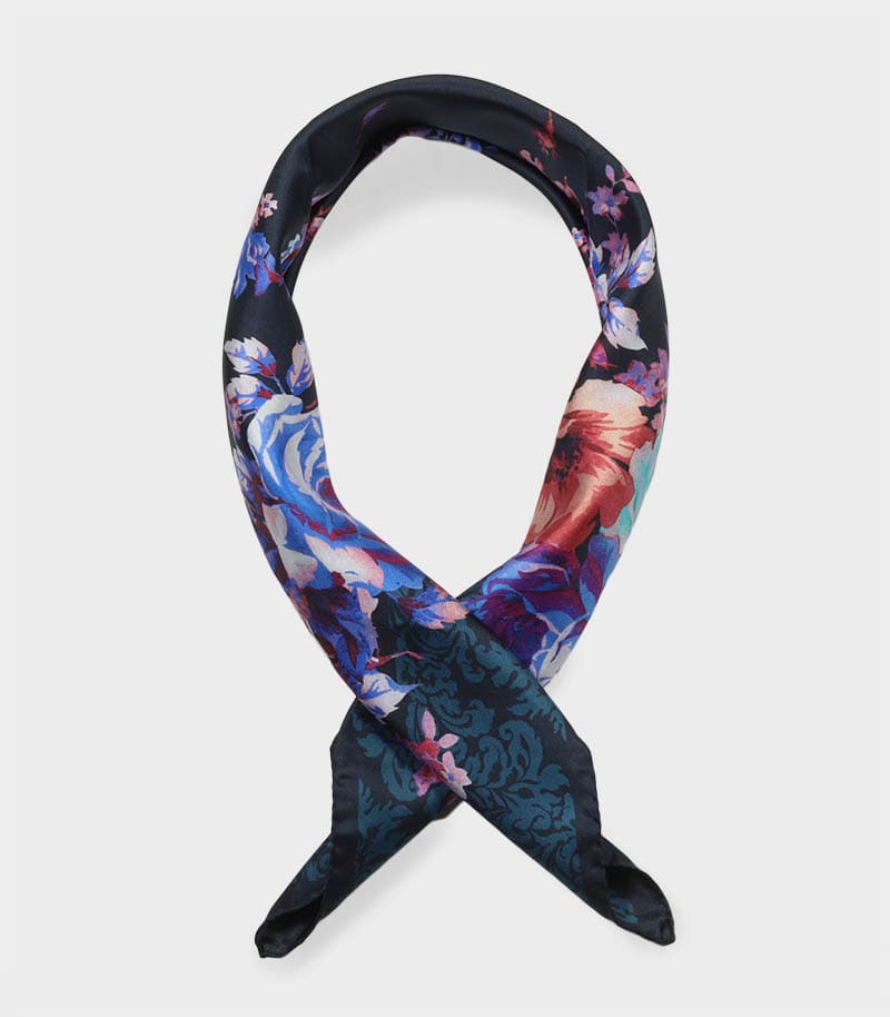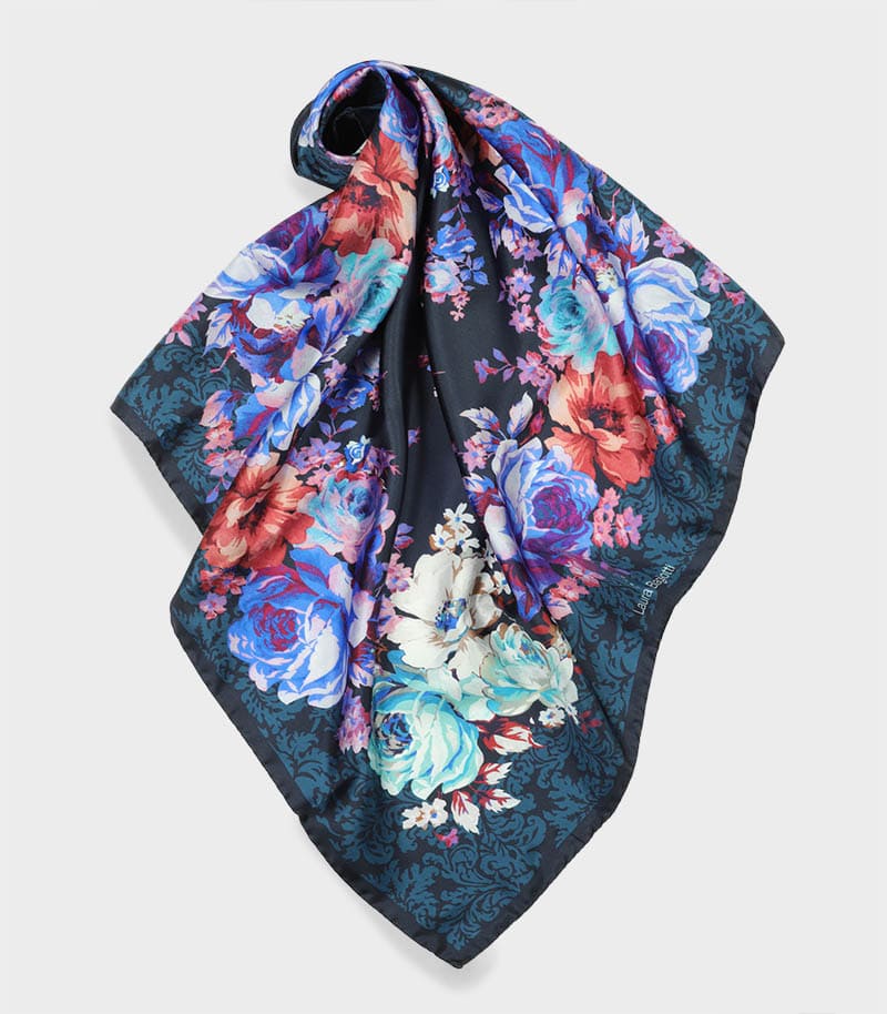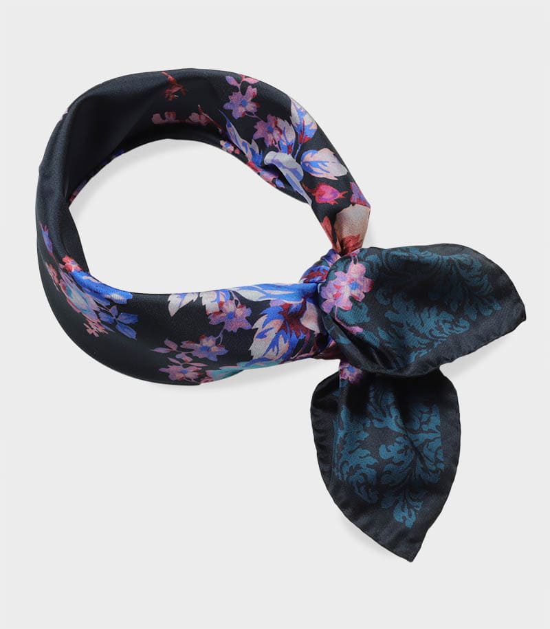 Apaszka jedwabna 65x65 grafitowa kwiatowa elegancka premium