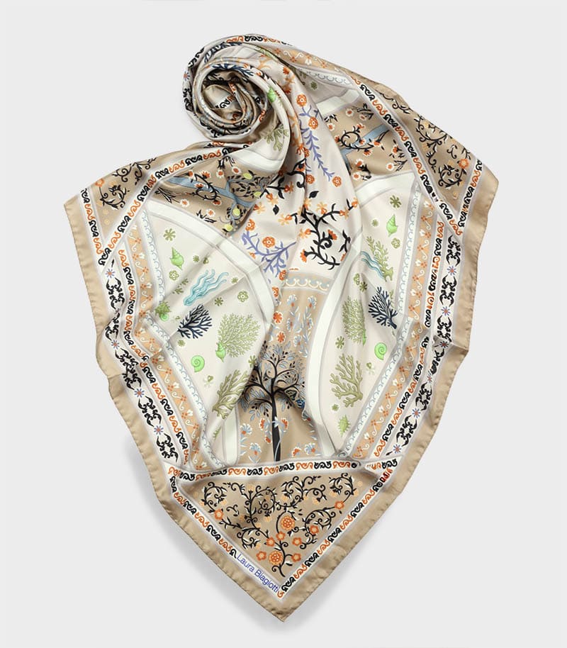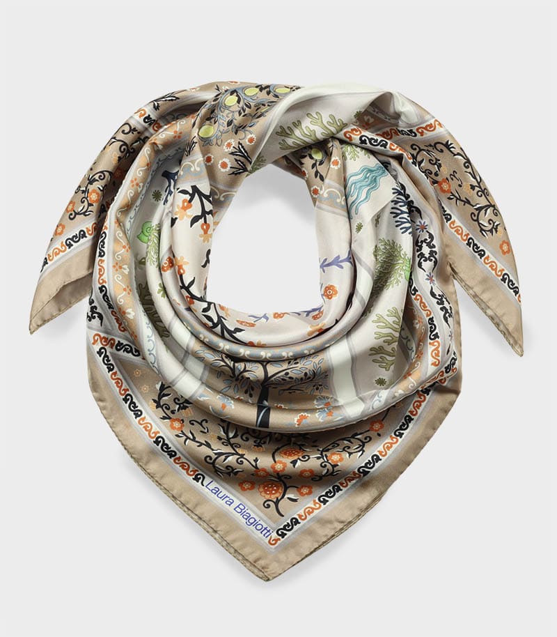 Apaszka jedwabna botanical harmony beżowa 90x90
