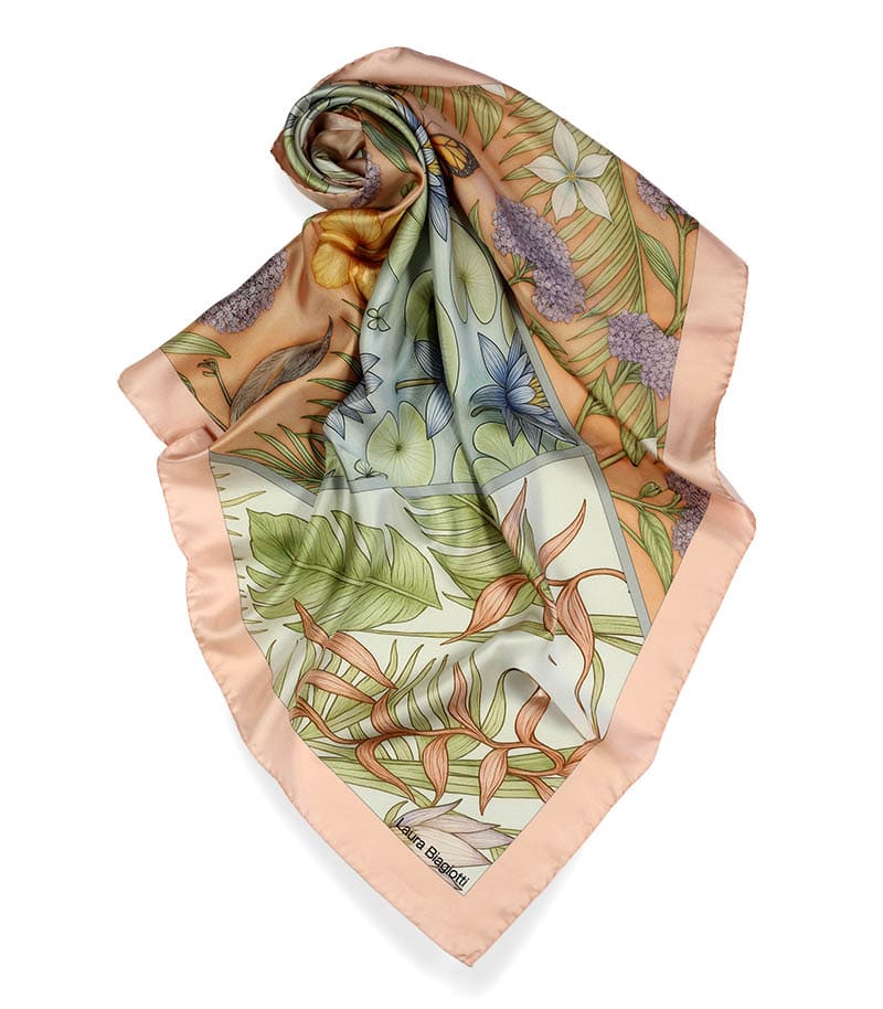 Apaszka jedwabna premium Laura Biagiotti 90x90 w łososiowym kolorze, to luksusowy dodatek inspirowany włoską modą i ponadczasową elegancją. Ta markowa apaszka jedwabna damska została wykonana z najwyższej jakości naturalnego jedwabiu.