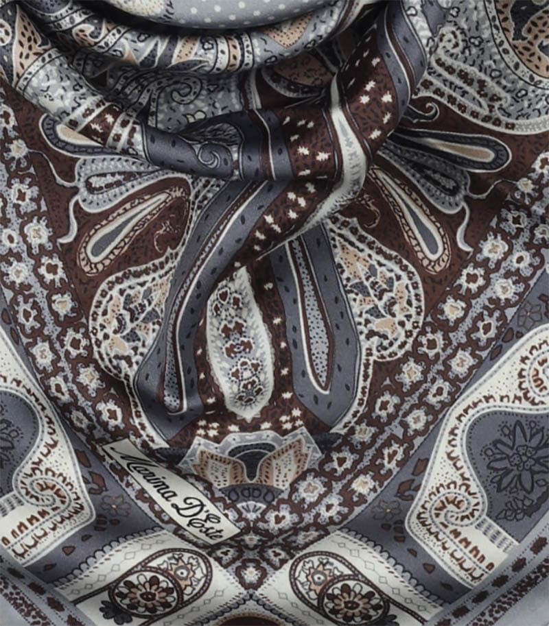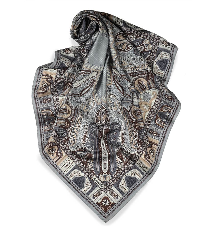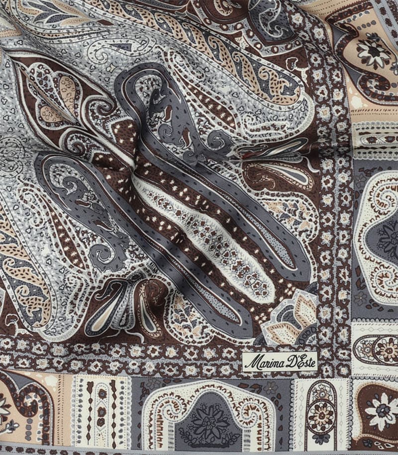 Apaszka jedwabna szara Marina D'Este wzór paisley