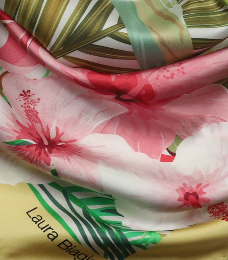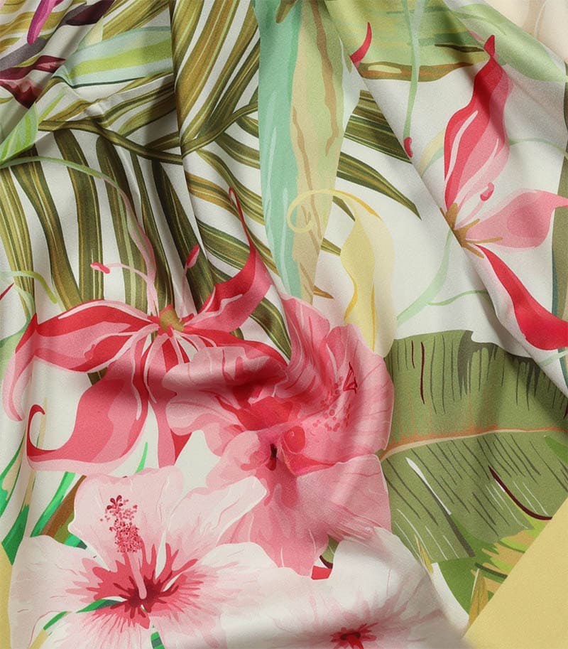 Apaszka jedwabna włoska kwiaty tropikalne 90x90