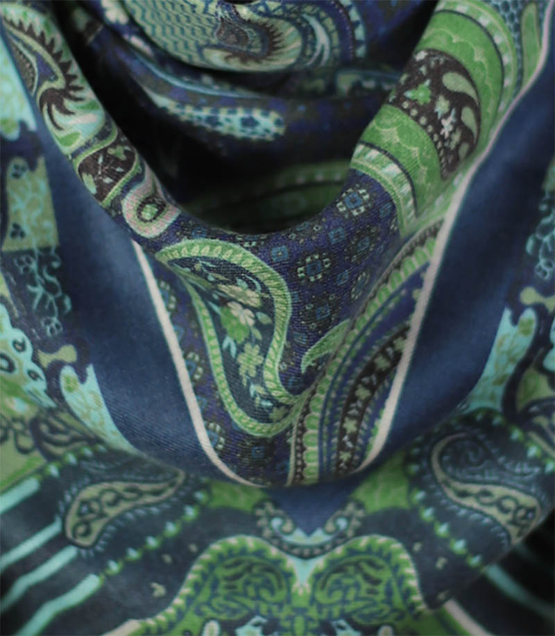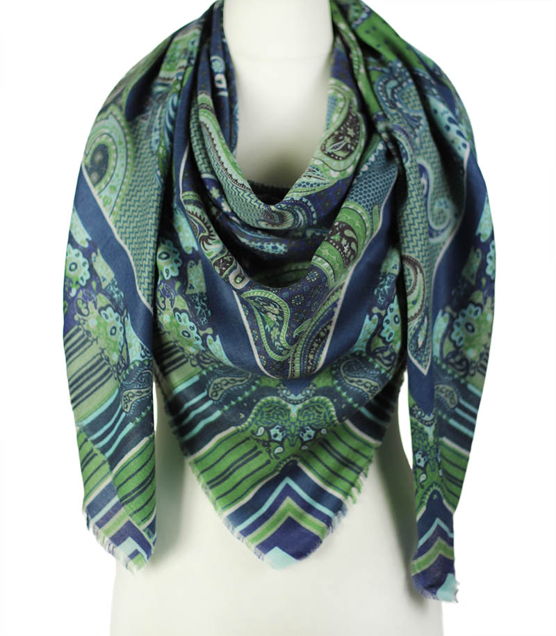 Chusta wełniana zielona z orientalnym wzorem