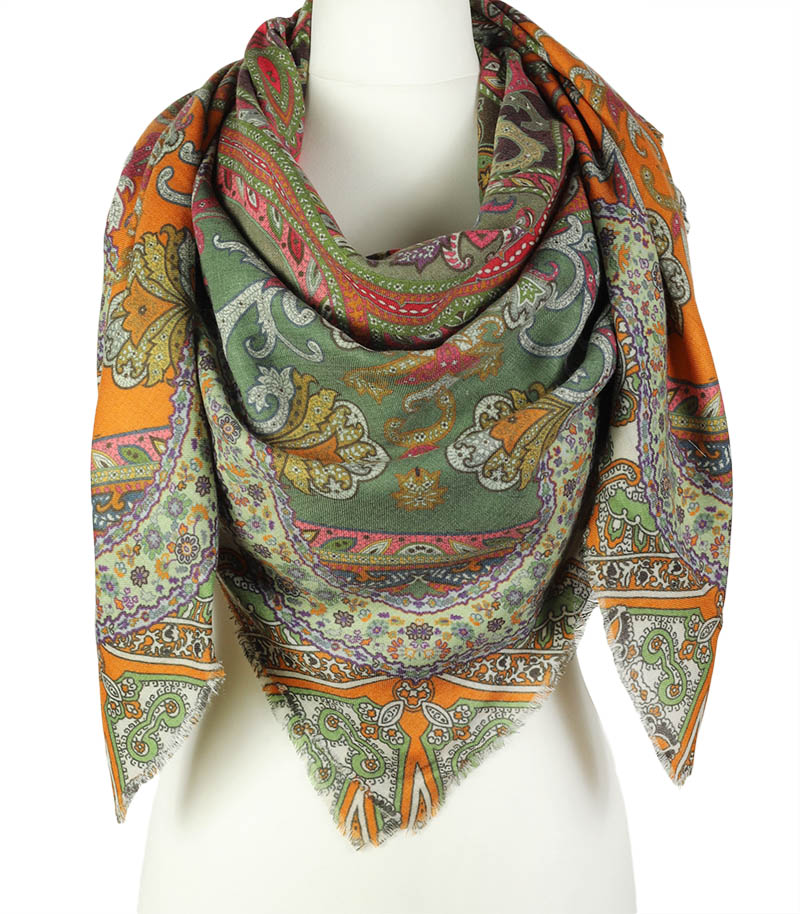 Chusta wełniana zielona z wschodnim wzorem