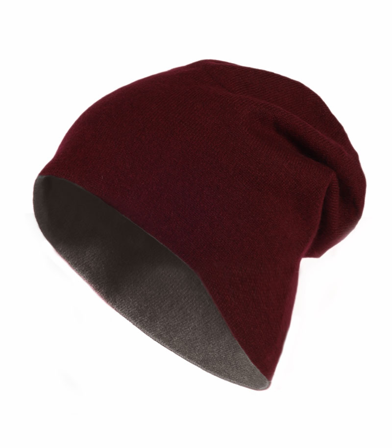 Czapka kaszmirowa dwustronna w kolorze bordowym