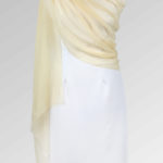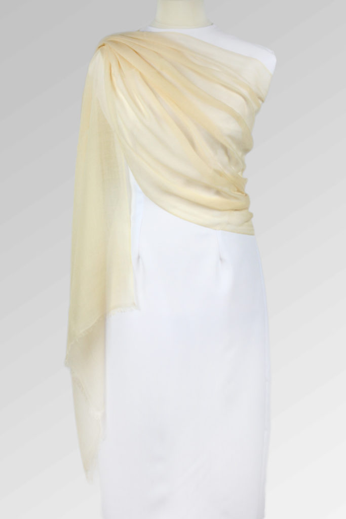 Delikatny ręcznie wykonany szal z kaszmiru w kolorze kremowym