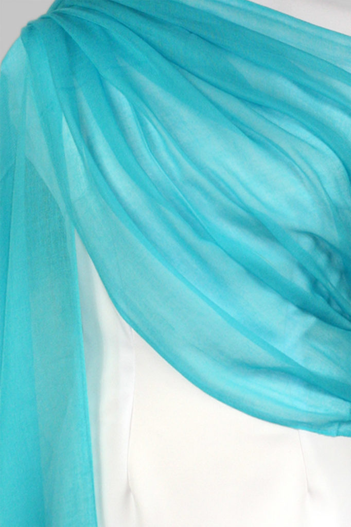 Delikatny ręcznie wykonany szal z kaszmiru w kolorze turkusowym