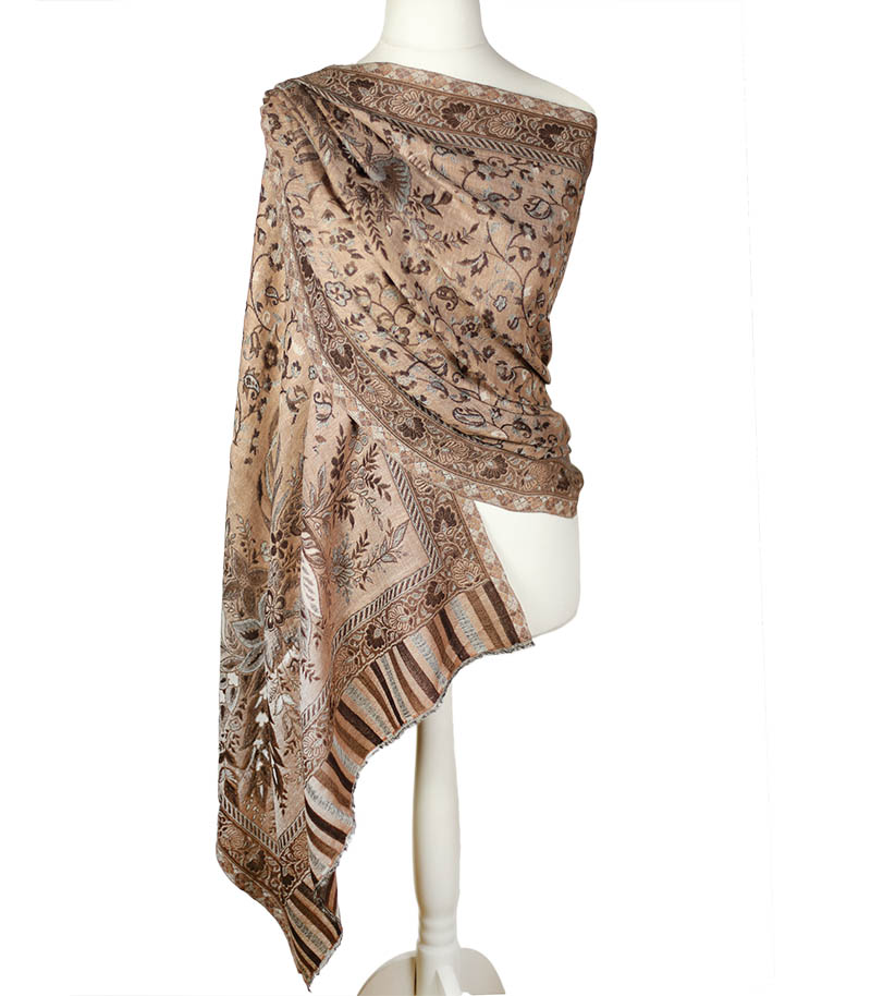Typ: szal z wełny merino; Kolor: beżowy, brązowy, biały; Rozmiar: 70 cm x 200 cm; Materiał: 85% wełna merino premium, 15% jedwab; Czyszczenie Jak wyczyścić produkt z wełny Wełniane inspiracje Szal wełniany inspiracje