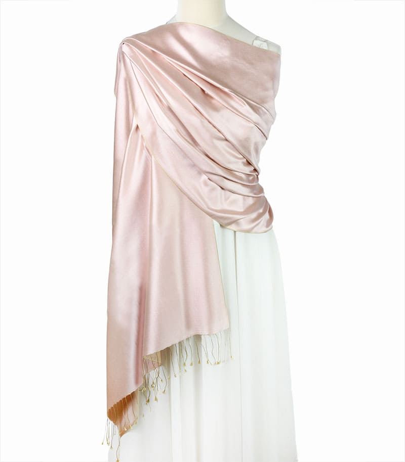 Elegancki szal jedwabny w kolorze pudrowy róż do sukienki.