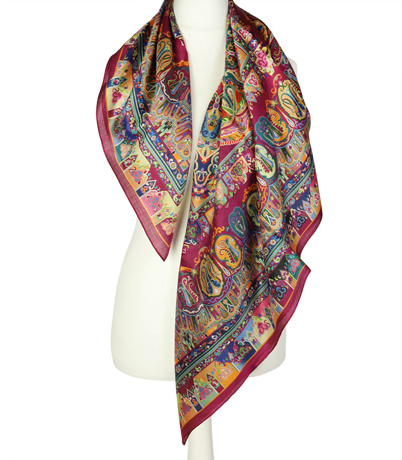 Jedwabna chusta w kolorze burgundowym wzór wschodni