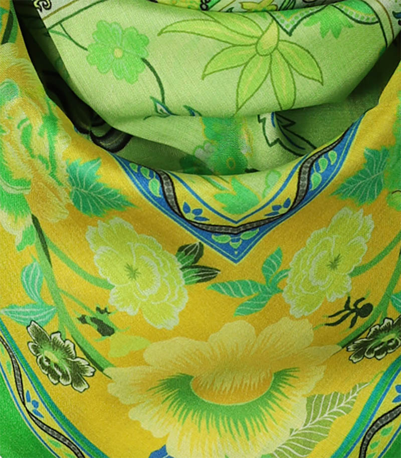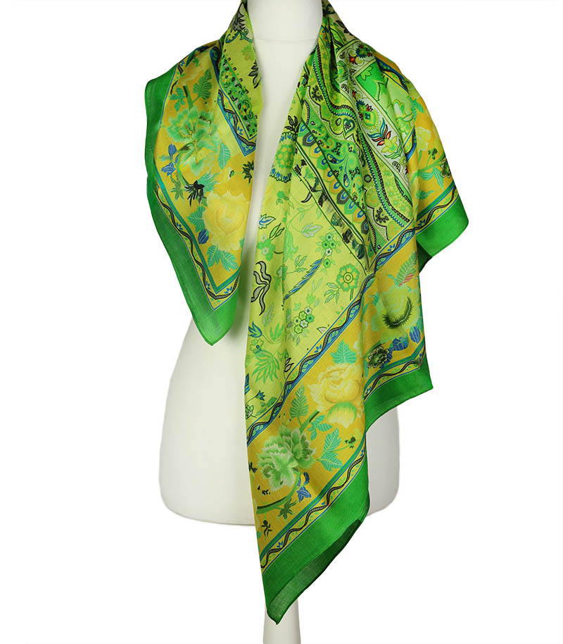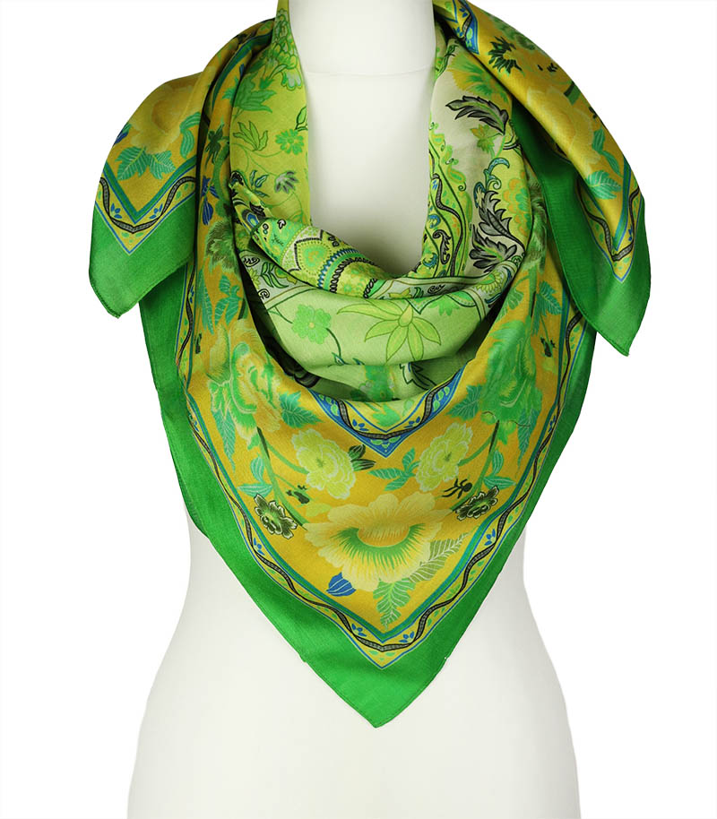 Jedwabna chusta w kolorze zielonym wzór kwiatowy