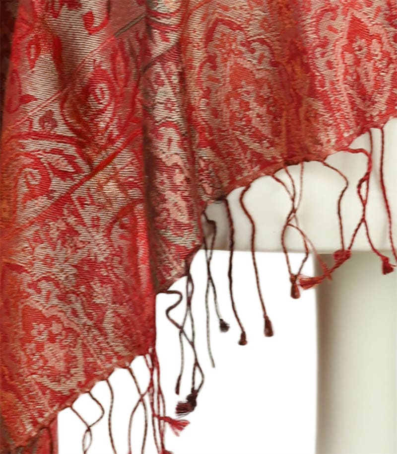 Jedwabny szal czerwony wzór orientalny