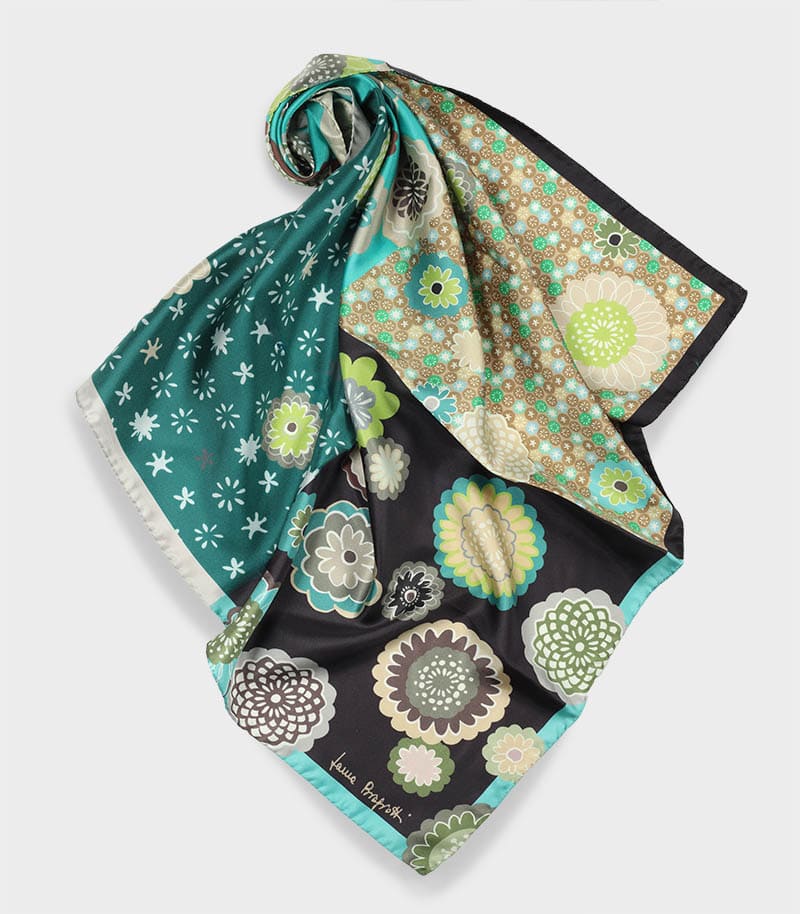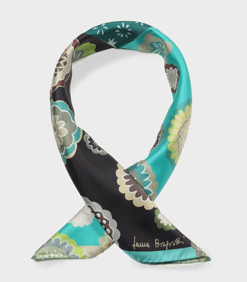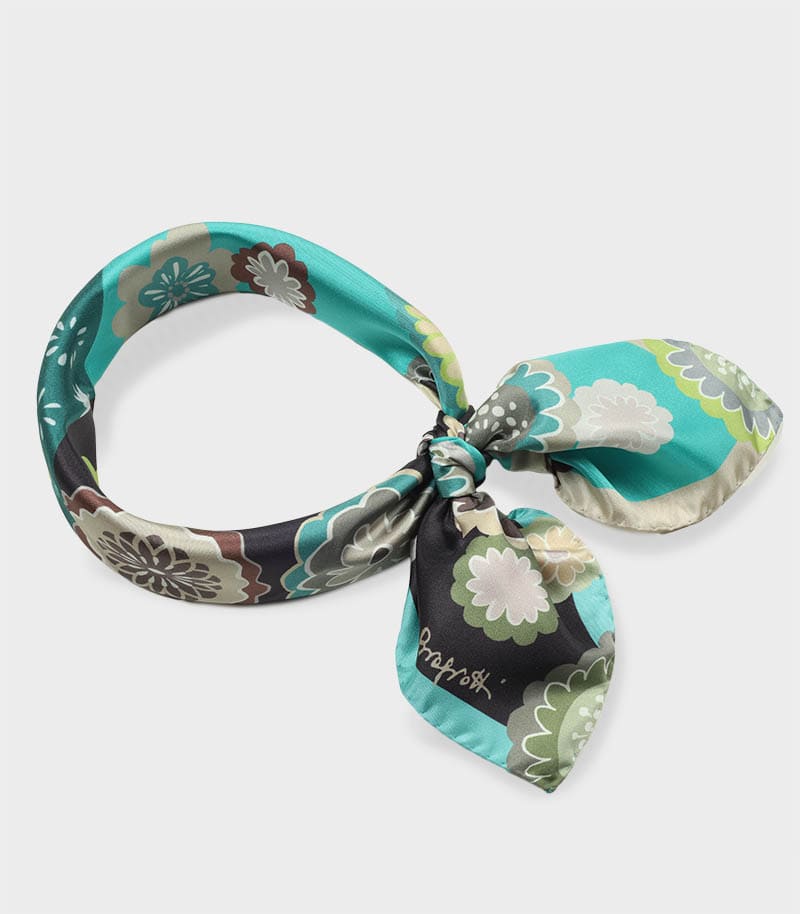 Mała apaszka jedwabna brązowa turkusowa kwiatowa włoska