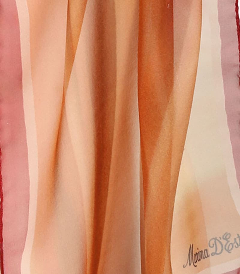 Elegancki szalik jedwabny miedziany damski Marina D'Este to stylowy dodatek w okresie wiosenno-letnim, który podkreśla charakter codziennych i eleganckich stylizacji. Wykonany z naturalnego jedwabiu we Włoszech zachwyca lekkością oraz komfortem noszenia. Dekoracyjny wzór dodaje świeżości i ponadczasowej elegancji, dlatego szalik doskonale uzupełnia kobiecą garderobę.