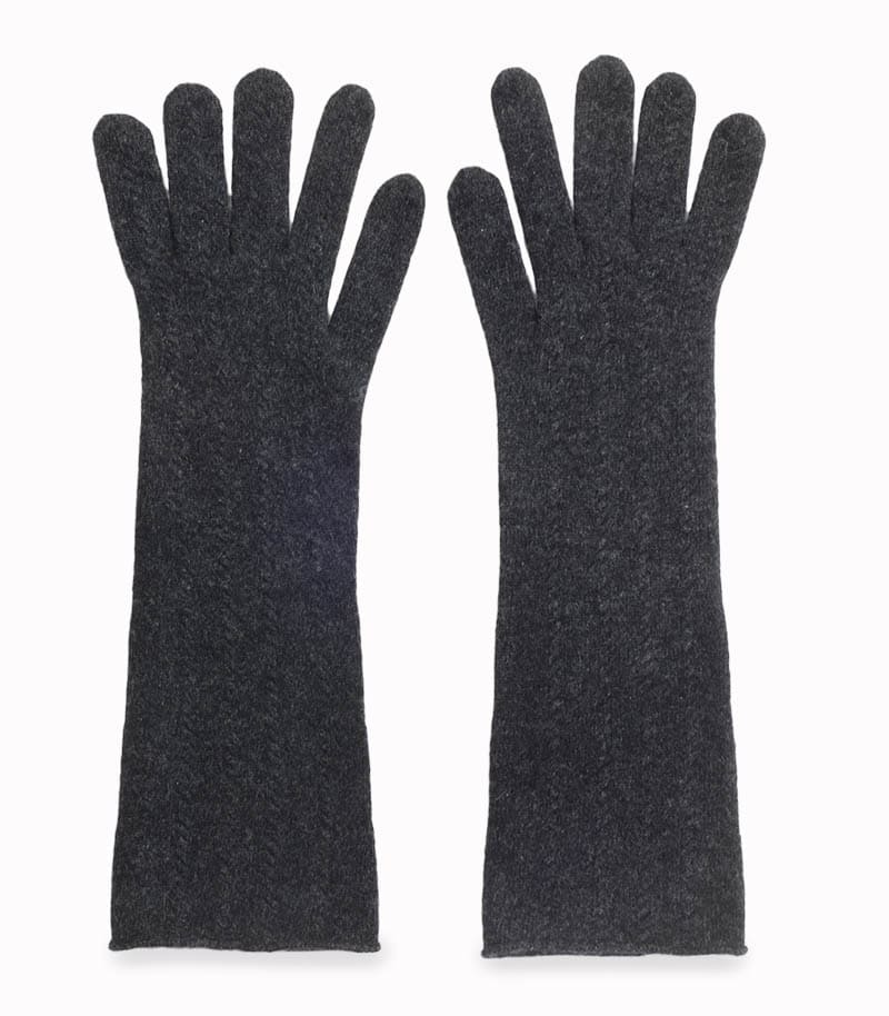 Typ: rękawiczki damskie kaszmirowe długie; Kolor: grafitowy; Rozmiar: uniwersalny damski; Materiał: 100% kaszmir ;