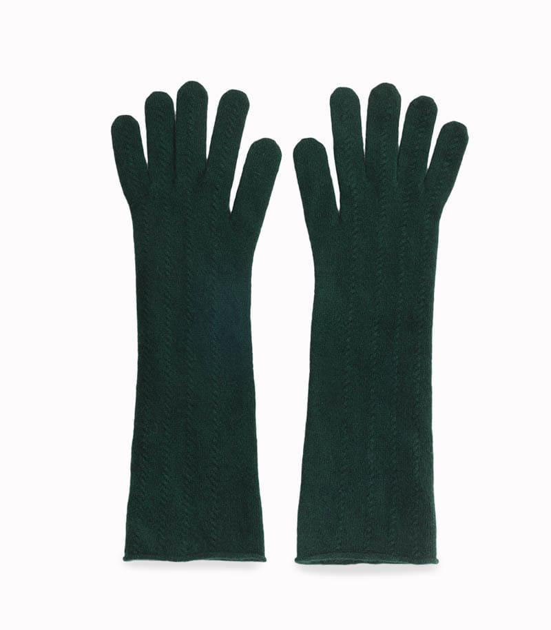 Typ: rękawiczki damskie kaszmirowe długie; Kolor: ciemny zielony; Rozmiar: uniwersalny damski; Materiał: 100% kaszmir ;