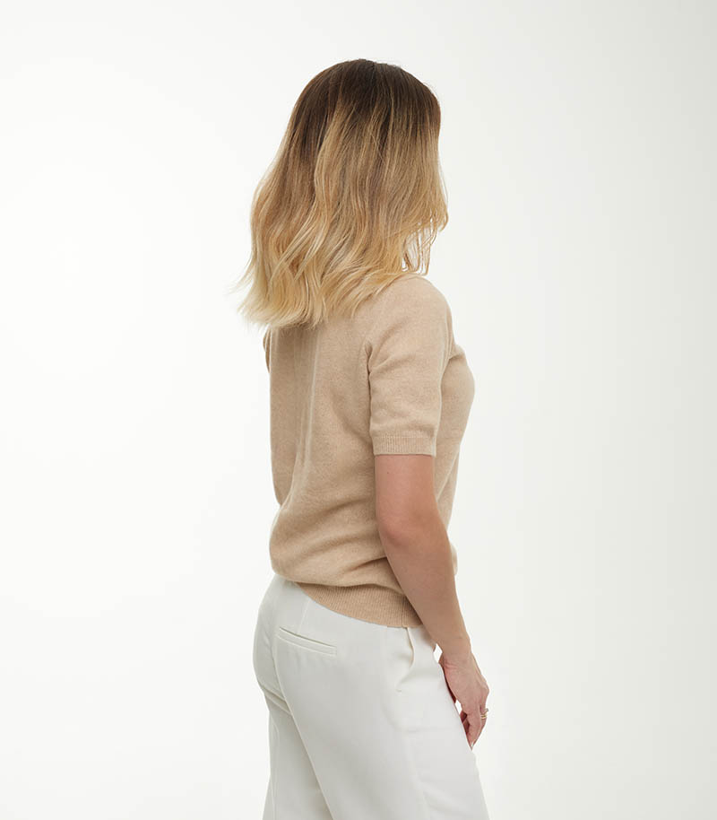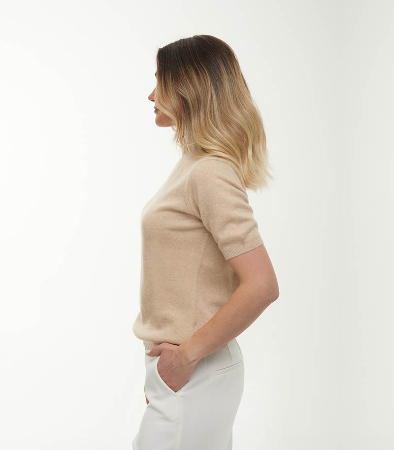 Nasz sweter z krótkim rękawem to połączenie elegancji, lekkości i wyjątkowego komfortu. Wykonany w 100% z najwyższej jakości kaszmiru, zachwyca miękkością i doskonałym dopasowaniem do sylwetki. Idealny dla osób, które cenią ponadczasowy styl i naturalny luksus.