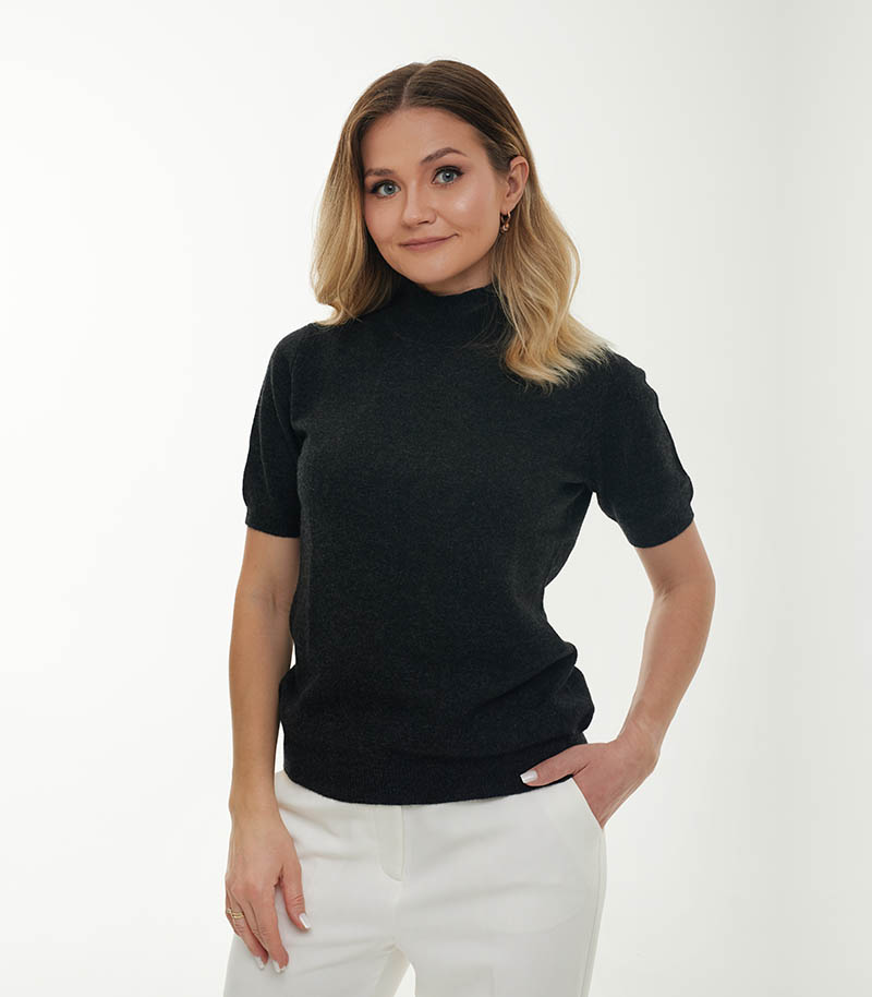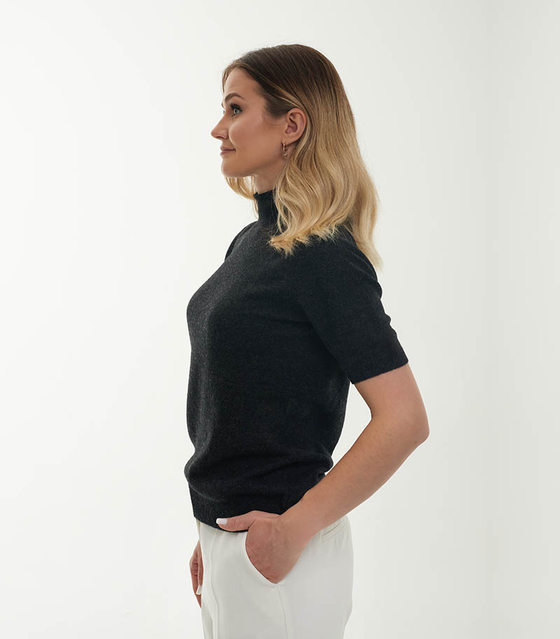 Nasz sweter z krótkim rękawem to połączenie elegancji, lekkości i wyjątkowego komfortu. Wykonany w 100% z najwyższej jakości kaszmiru, zachwyca miękkością i doskonałym dopasowaniem do sylwetki. Idealny dla osób, które cenią ponadczasowy styl i naturalny luksus.