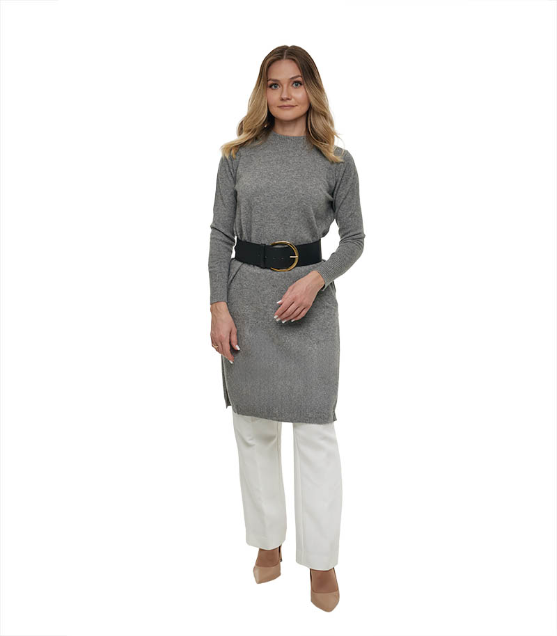 Sweter kaszmirowy szary długi zimowy