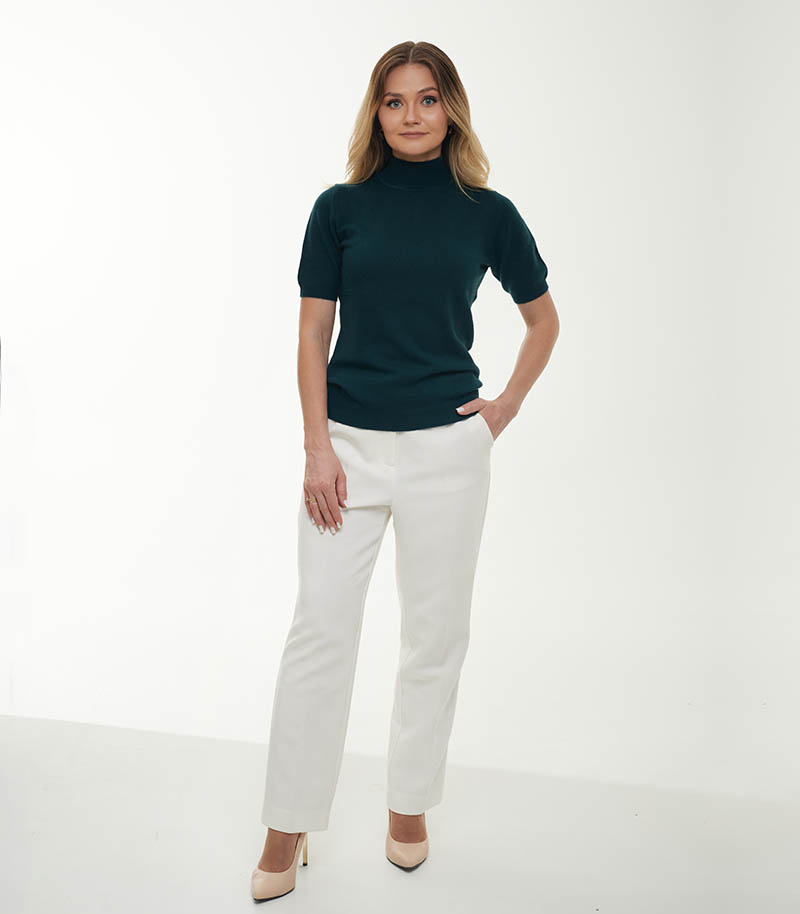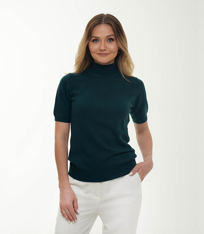 Nasz sweter z krótkim rękawem to połączenie elegancji, lekkości i wyjątkowego komfortu. Wykonany w 100% z najwyższej jakości kaszmiru, zachwyca miękkością i doskonałym dopasowaniem do sylwetki. Idealny dla osób, które cenią ponadczasowy styl i naturalny luksus.