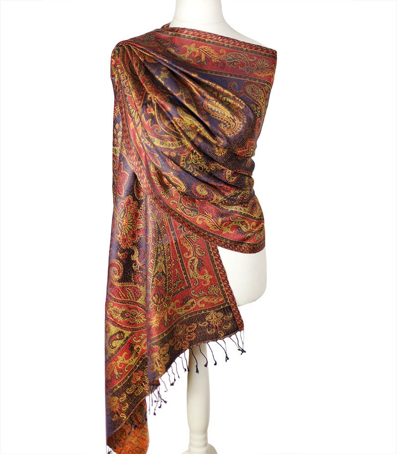 Typ: szal jedwabny ; Kolor: granatowy, czerwony, złoty; Rozmiar: 70 cm x 200 cm; Materiał: 100% jedwab;