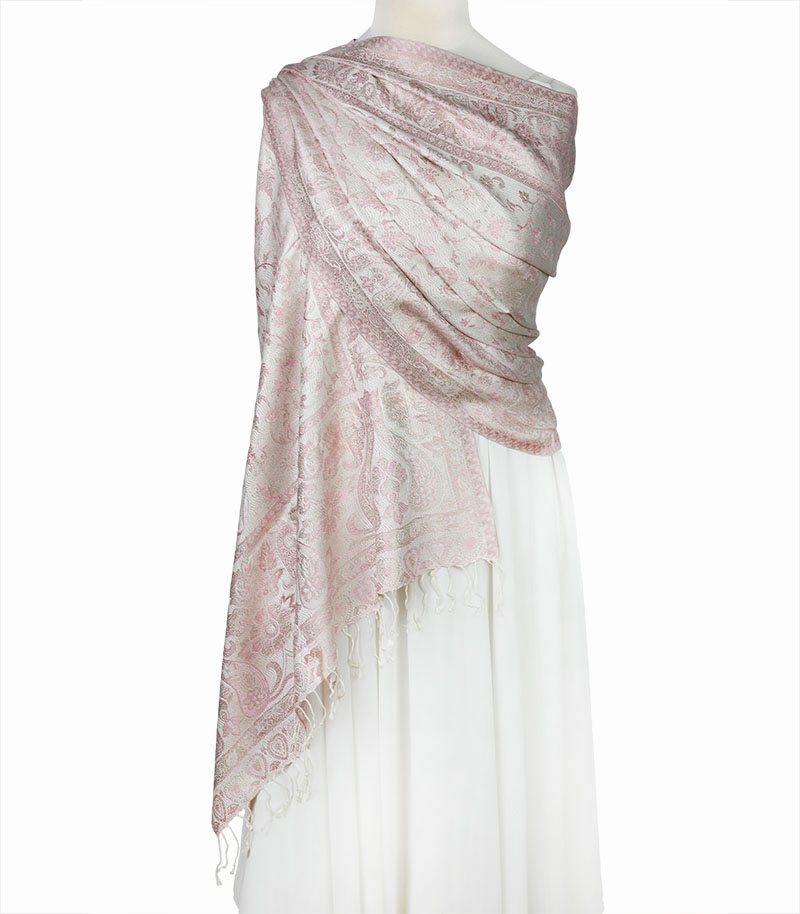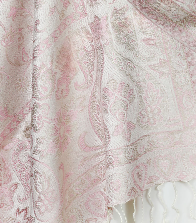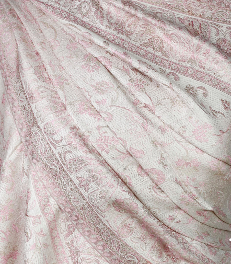 Typ: szal jedwabny ; Kolor:kremowy, różowy; Rozmiar: 70 cm x 200 cm; Materiał: 100% jedwab;