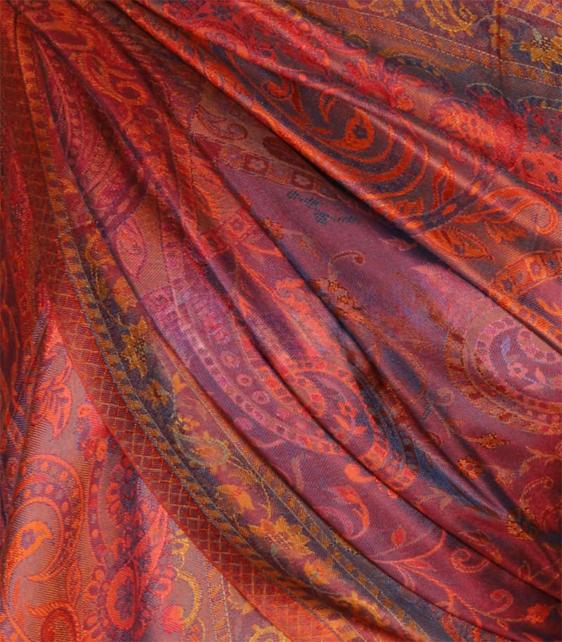 Typ: szal jedwabny ; Kolor: miedziany, morski, liliowy; Rozmiar: 70 cm x 200 cm; Materiał: 100% jedwab;