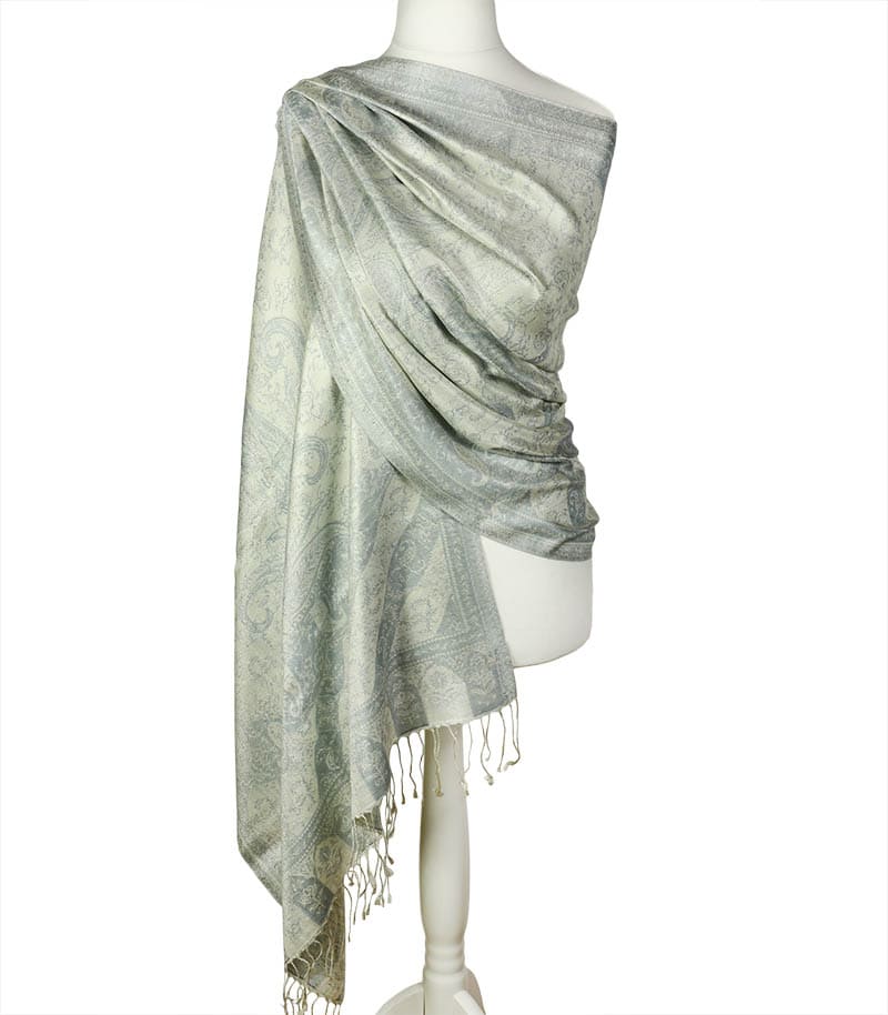 Szal jedwabny srebrny z wzorem paisley LIMITED EDITION