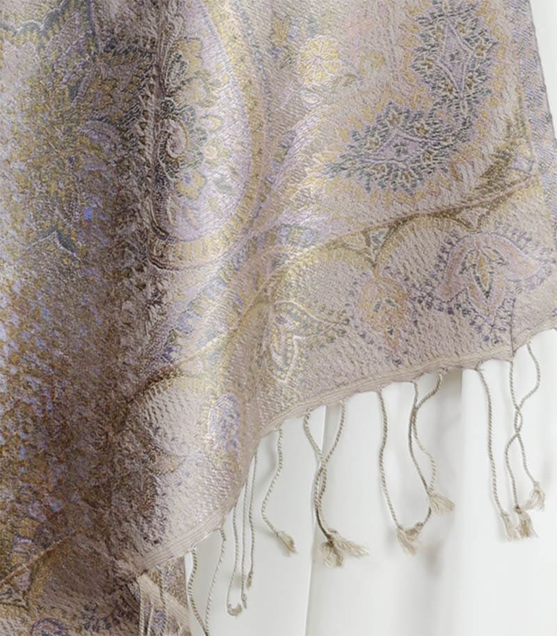 Jedwabny szal to absolutna klasyka gatunku – dodatek, który nada każdej Twojej stylizacji subtelnego powiewu luksusu. Jego gładka, subtelnie połyskująca faktura wprawi Cię w doskonały nastrój i otuli niczym delikatna mgiełka. Po tym właśnie poznasz naturalną przędzę jedwabną! Ten szal jedwabny w kolorze beżowym jamawar wzór to ciekawy pomysł na urozmaicenie każdej stylizacji. Zarzuć go na klasyczną małą czarną, strój biznesowy czy do czegoś casualowego. Możesz go także zawiązać na kilka sposobów – tak, jak lubisz. Poeksperymentuj i zobacz, jak wiele możliwości daje jeden, niepozorny dodatek klasy premium!