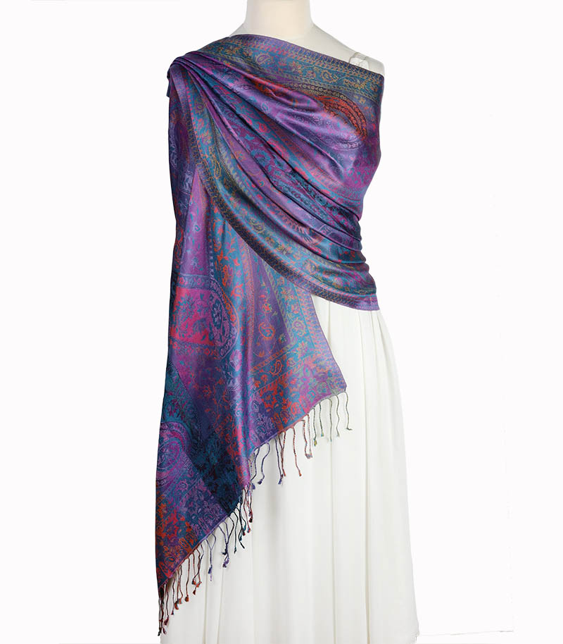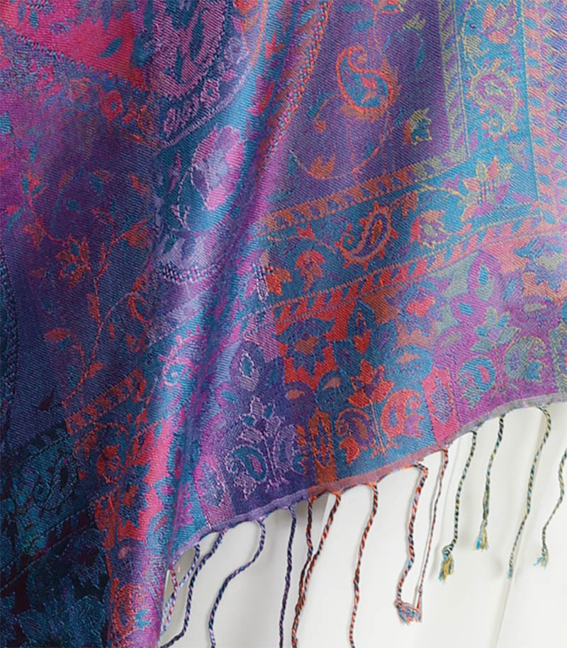 Szal jedwabny w kolorze fioletowym wzór orientalny