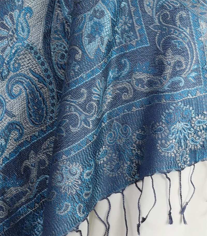 Jedwabny szal to absolutna klasyka gatunku – dodatek, który nada każdej Twojej stylizacji subtelnego powiewu luksusu. Jego gładka, subtelnie połyskująca faktura wprawi Cię w doskonały nastrój i otuli niczym delikatna mgiełka. Po tym właśnie poznasz naturalną przędzę jedwabną! Ten szal jedwabny w kolorze morskim jamawar wzór to ciekawy pomysł na urozmaicenie każdej stylizacji. Zarzuć go na klasyczną małą czarną, strój biznesowy czy do czegoś casualowego. Możesz go także zawiązać na kilka sposobów – tak, jak lubisz. Poeksperymentuj i zobacz, jak wiele możliwości daje jeden, niepozorny dodatek klasy premium!