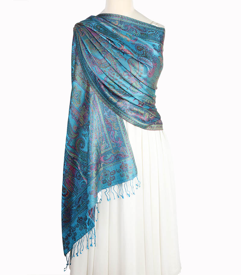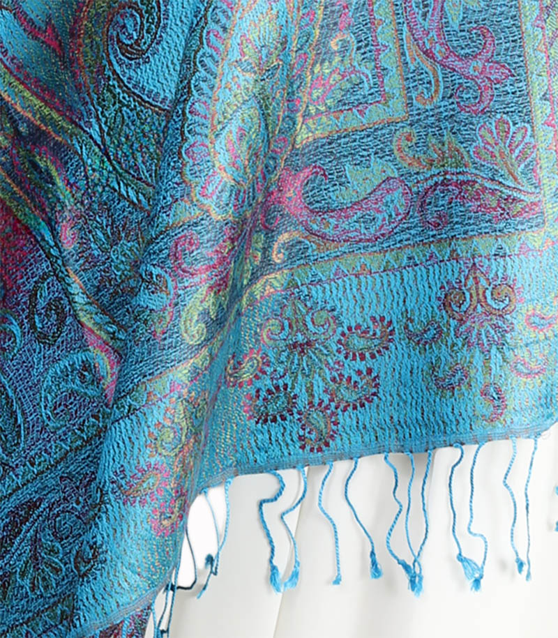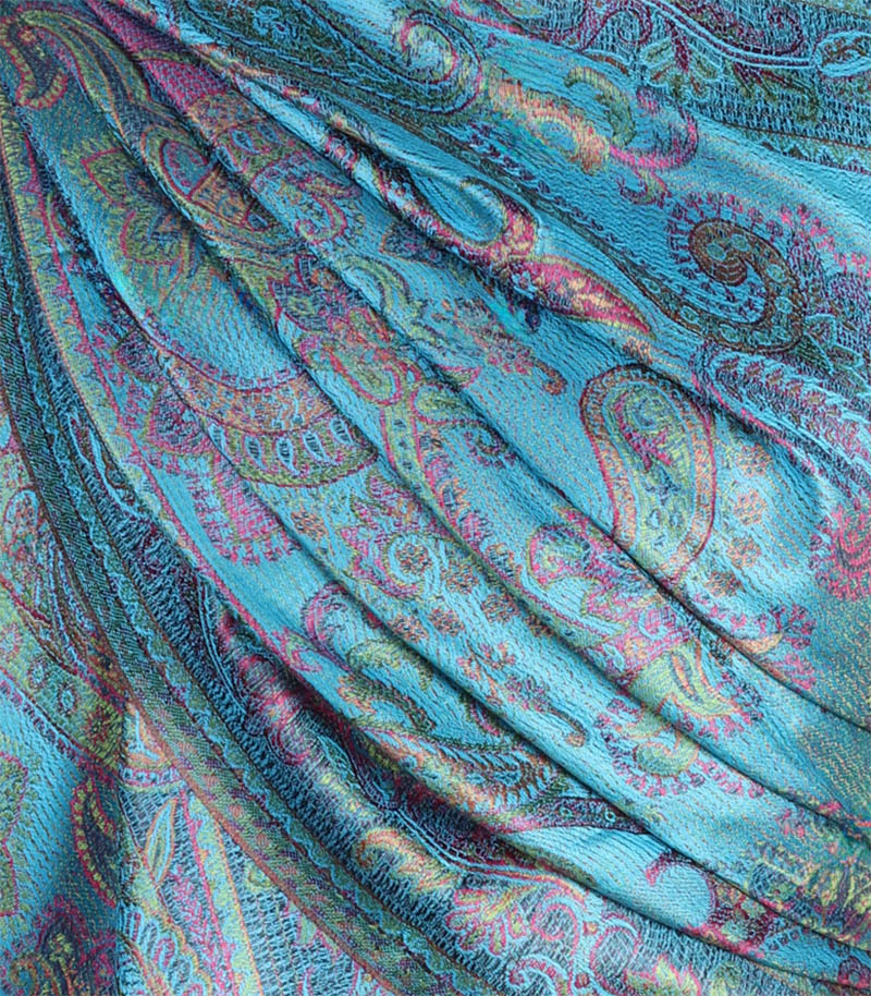 Szal jedwabny w kolorze turkusowym wzór orientalny