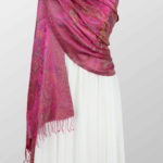 Delikatny dwustronny szal jedwabny w klasycznym rozmiarze 70x200cm. Szal ten doskonale się układa, jest zwiewny i delikatny. Włókno jedwabiu jest delikatne, bardzo lekkie o naturalnym połysku. Jego wzór nawiązuje do kultury Indii. Szal tkany w typowy wzór paysley w ciekawym wzornictwie wschodu. Szal zakończony frędzlami.