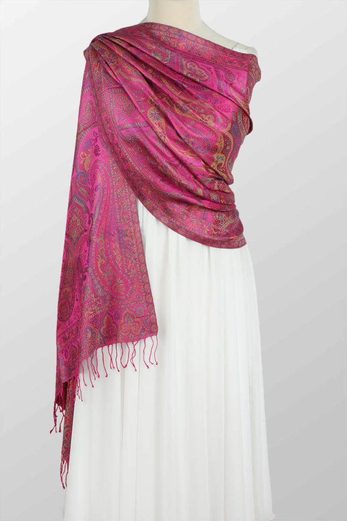 Szal jedwabny z wzorem orientalnym w kolorze fuksji