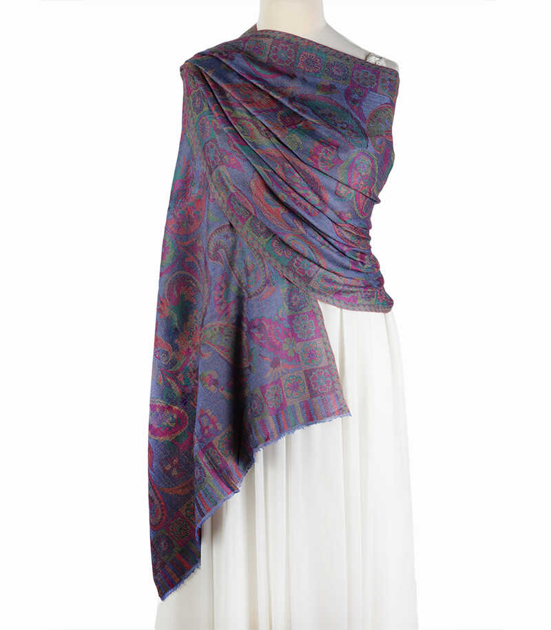 Ciepły, miękki, delikatny – niczym kaszmir, po prostu idealny. Właśnie taki jest ten granatowy szal wełniany. Został utkany z wełny merino premium w połączeniu z jedwabiem (85/15%). To sprawia, że doskonale chroni przed chłodem i wiatrem, a jednocześnie zachwyca subtelnym połyskiem i wyrafinowaną miękkością. To trzeba poczuć! Wzór jamawar nadaje temu modelowi niepowtarzalny charakter. Dzięki temu możesz wykorzystać ten dwustronny szal wełniany w niemal każdej stylizacji – wieczorowej, biznesowej czy na co dzień. To również doskonały pomysł na prezent. Szal nie posiada frędzli, jest dwustronny.