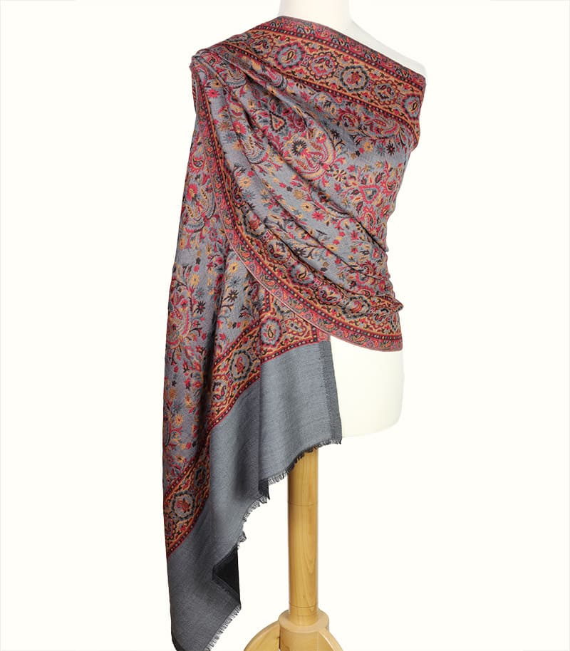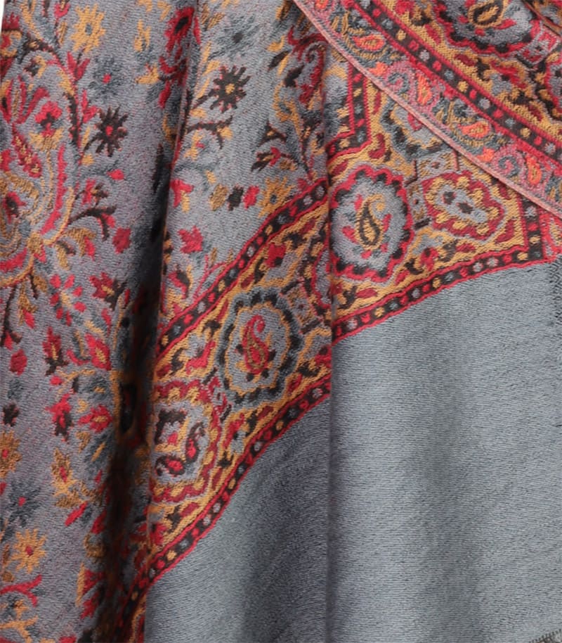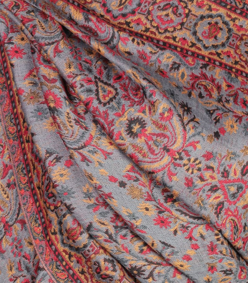 Szal wełniany w kolorze szarym wzór jamawar