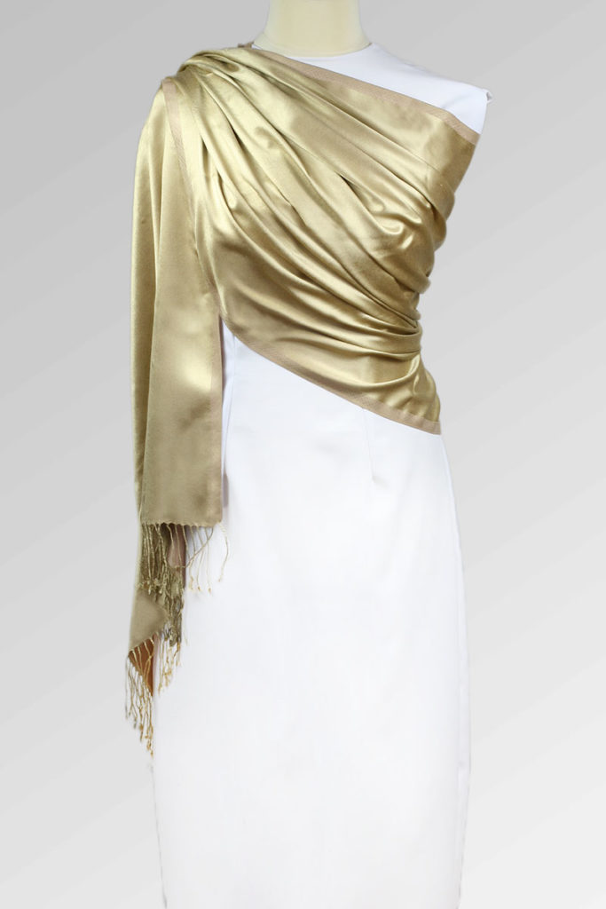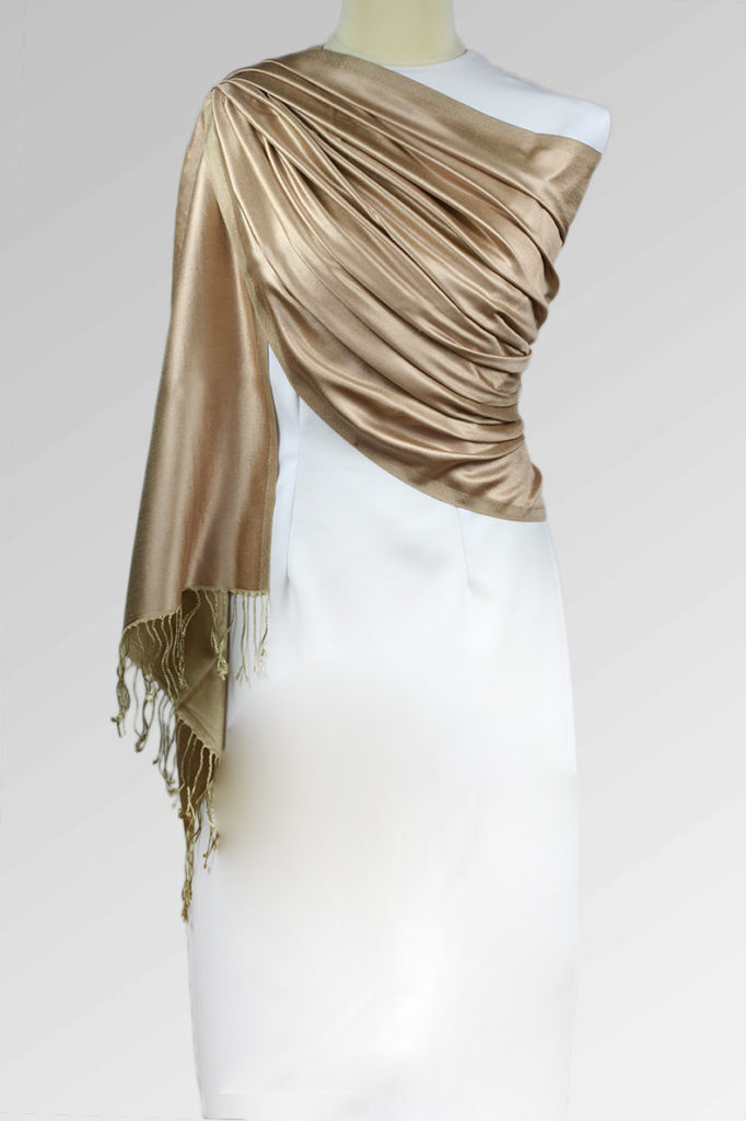 Szal z jedwabiu dwustronny w kolorze beżowo złotym
