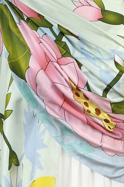 Delikatny dwustronny szal z 100% jedwabiu. Jest zwiewny i delikatny. Może być doskonałym dodatkiem do stroju wieczorowego. Włókno jedwabiu jest delikatne, bardzo lekkie o naturalnym połysku.