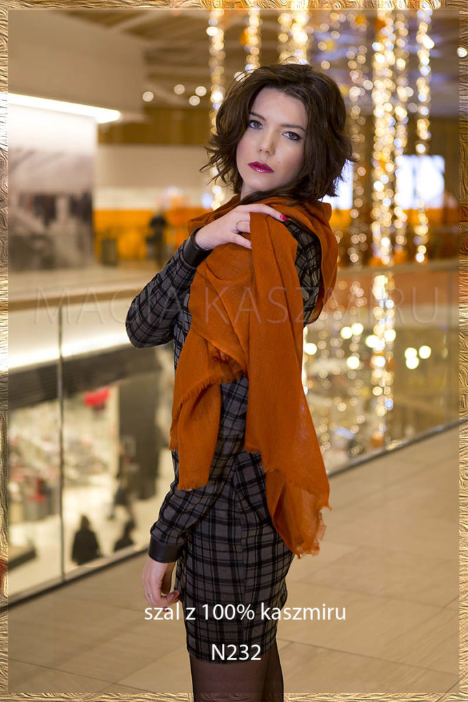 Śliczny szal z kaszmiru koloru miedzianego. Nadaje się jako idealny dodatek do eleganckiej kreacji wieczorowej.Delikatny i miękki w dotyku. Szal wykonywany i barwiony ręcznie w Nepalu.