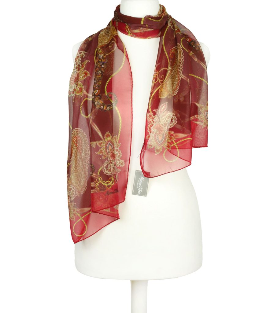 Szalik jedwabny wiosenny czerwono-burgundowy włoski